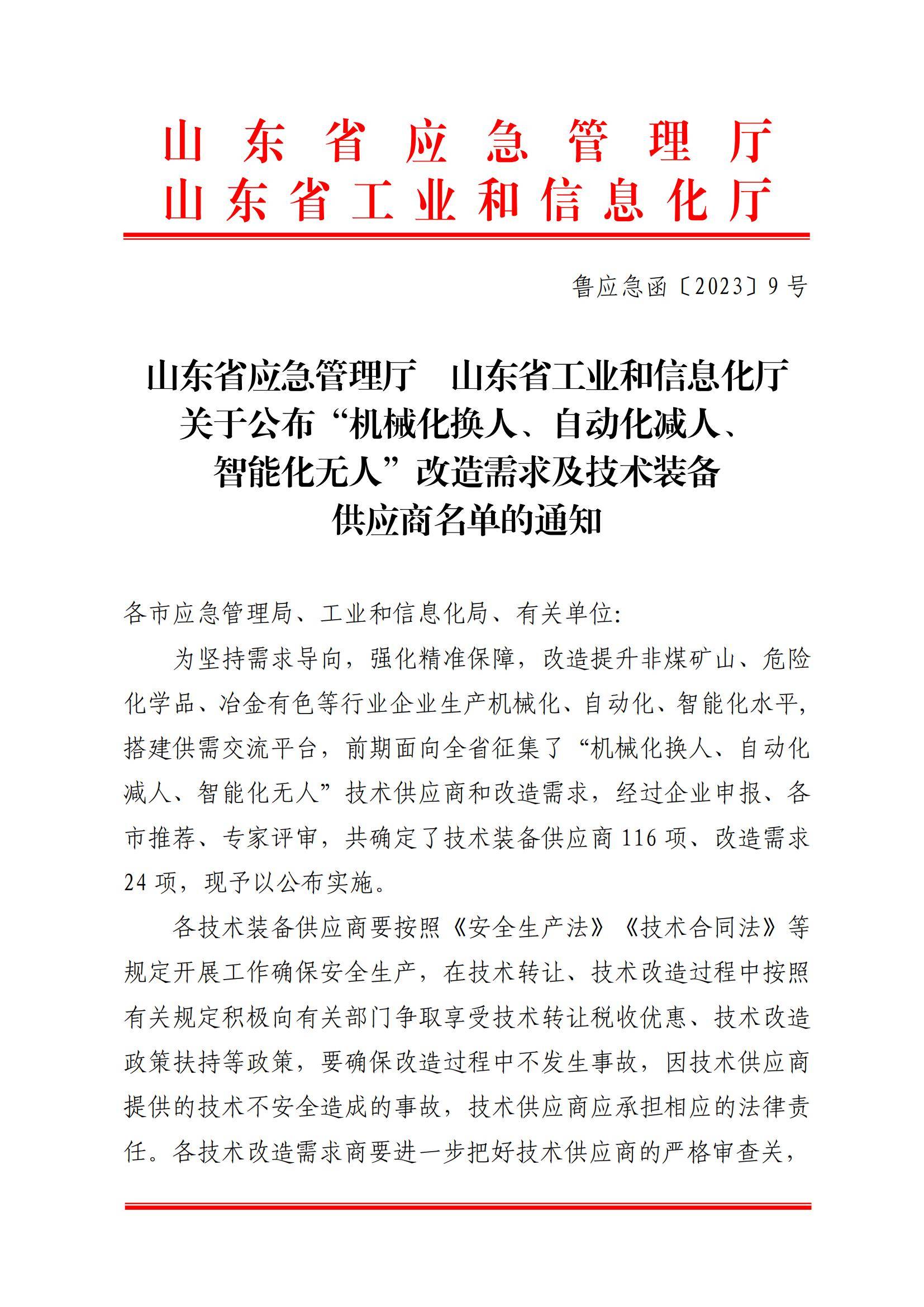 米兰买球入围“山东省应急管理厅 山东省工业和信息化厅“机械化换人、自动化减人、智能化无人”改造需求及技术装备供应商”
